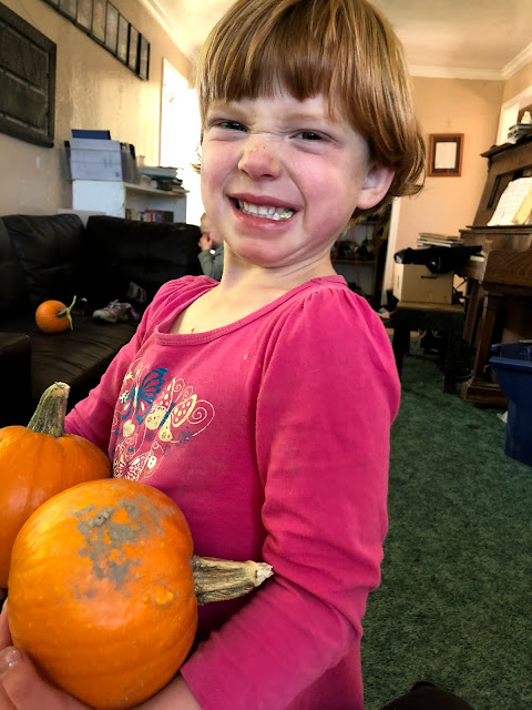 This weekend Reed and company harvested the long awaited pumpkin crop. He was super happy about this event.