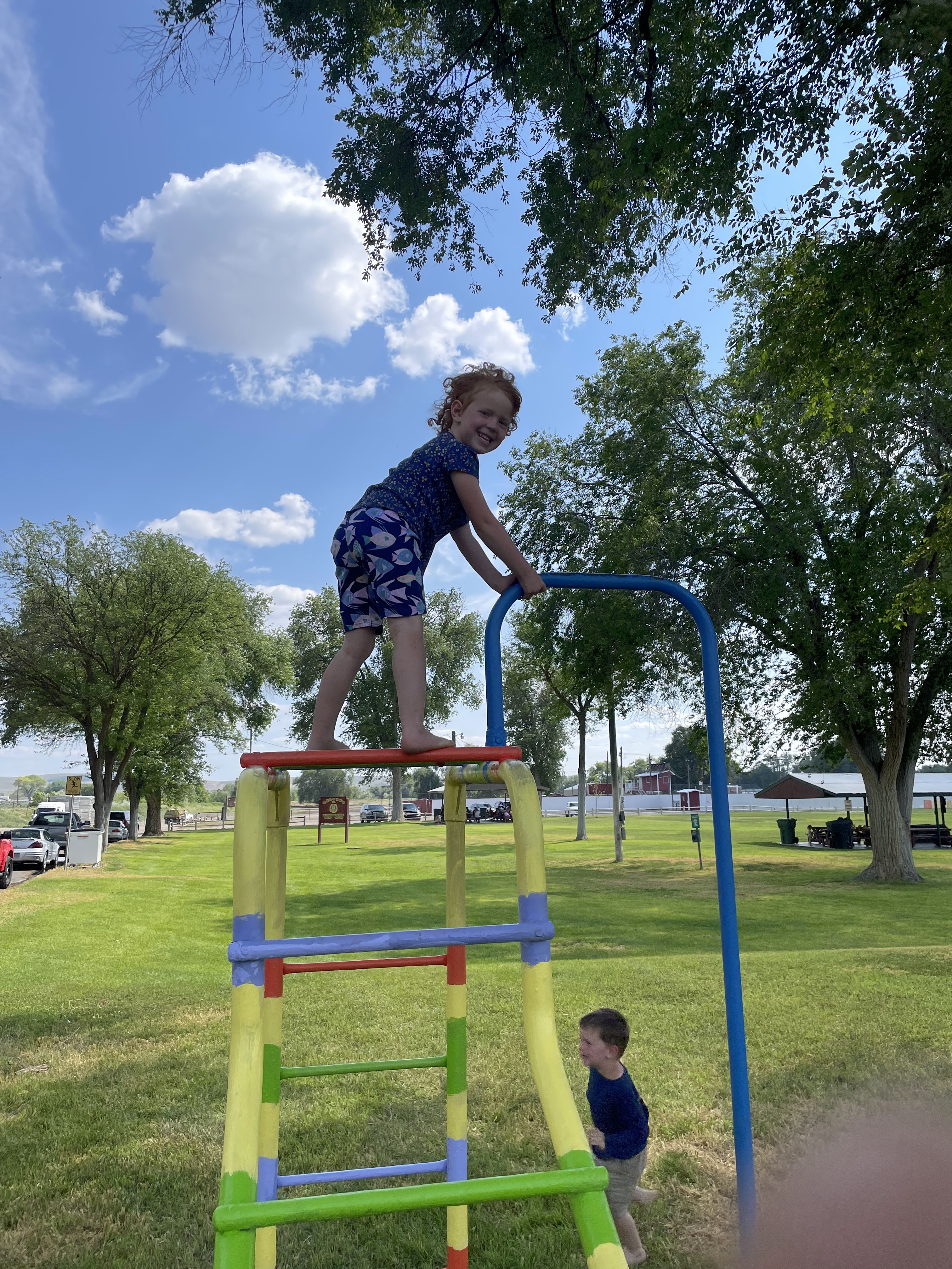 Alia loves summer but four wheeler riding is horrible on hair. Her curly hair really catches the dirt and wind and is nearly impossible to comb out. Thus it was time to braid her hair. This is the first attempt. Her hair is actually fairly long but with the tight curls it's always the same length. She was excited to have her hair done.